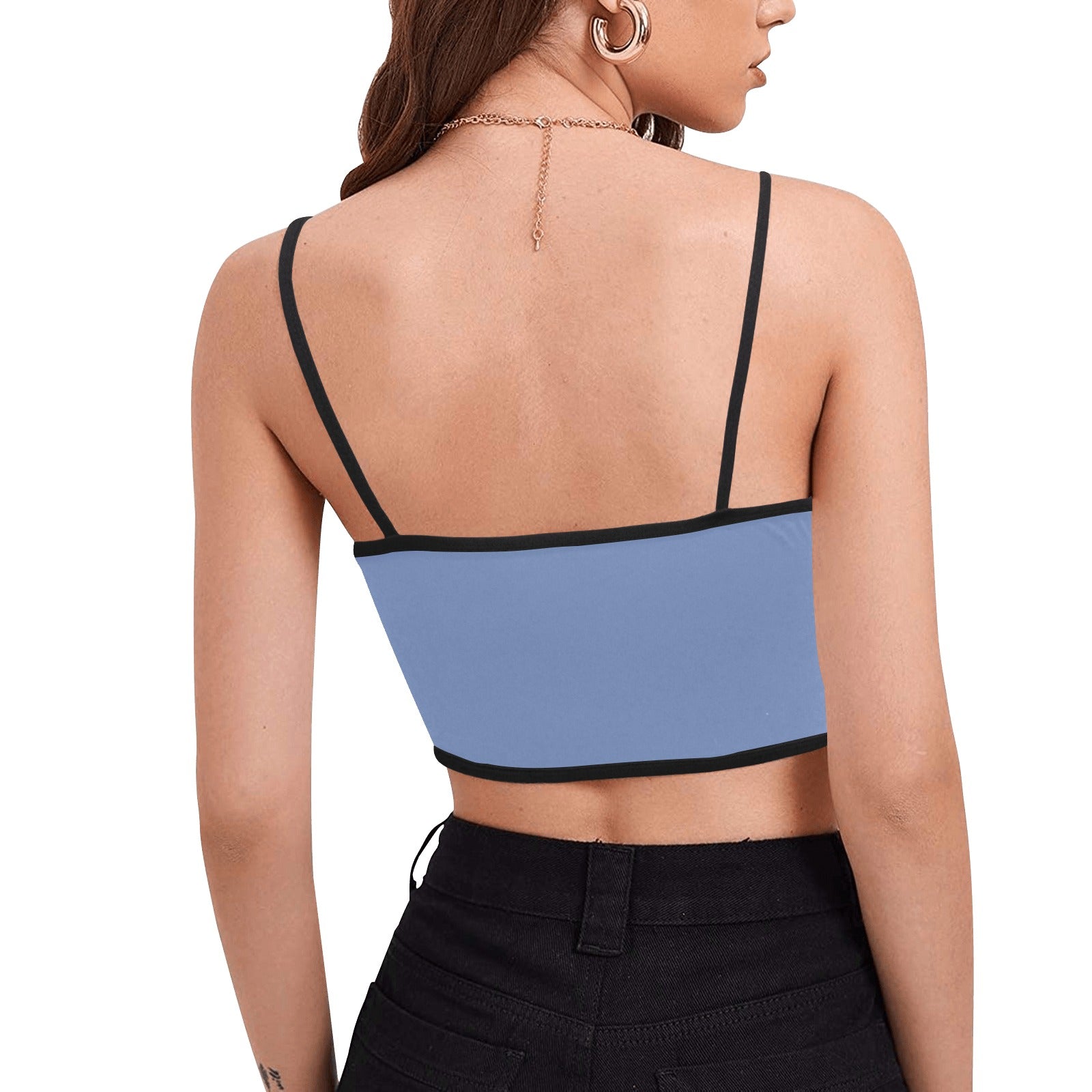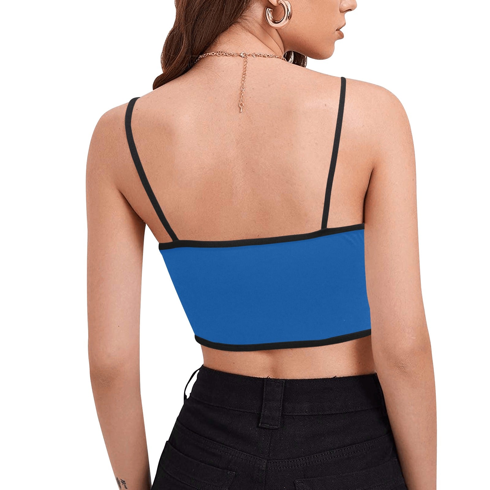 Designed with soft, stretchy polyester-spandex fabric, this crop top moves with you, whether you're lounging poolside, hitting the gym, or giving someone a very cheeky message. The sleek spaghetti straps and cropped silhouette show off your sass, while the built-in chest pad and clean edge stitching keep it secure and stylish.