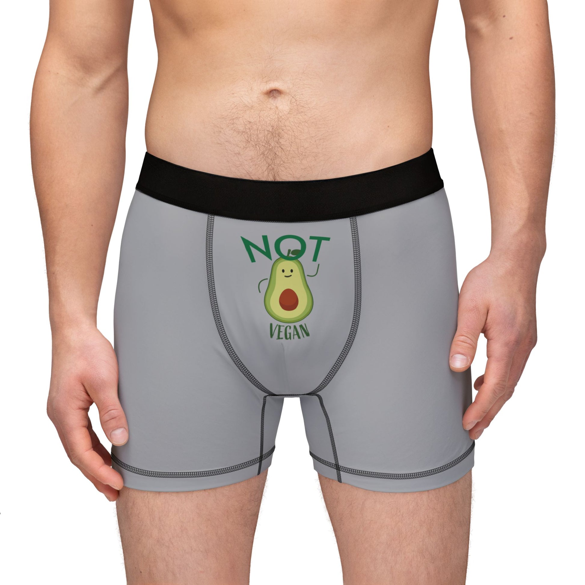 Crafted with a premium blend of 92% polyester and 8% spandex, these boxers are soft, stretchy, and built to keep up with your day. Featuring a vibrant avocado graphic paired with the bold phrase “NOT Vegan,” they’re perfect for men who love guac but won’t compromise on personality.